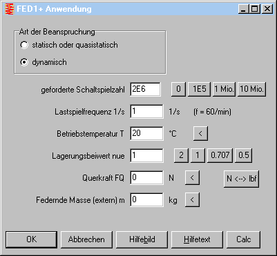 Unter "Bearbeiten->Anwendung" können Sie jetzt die geforderte Mindestlastspielzahl (maximale Schaltspielzahl) vorgeben. Dann erhalten Sie eine Fehlermeldung, wenn die berechnete Lastspielzahl kleiner ist als die geforderte. Wenn die geforderte Lastspielzahl nirgends angezeigt werden soll, lassen Sie den Wert bei 0.