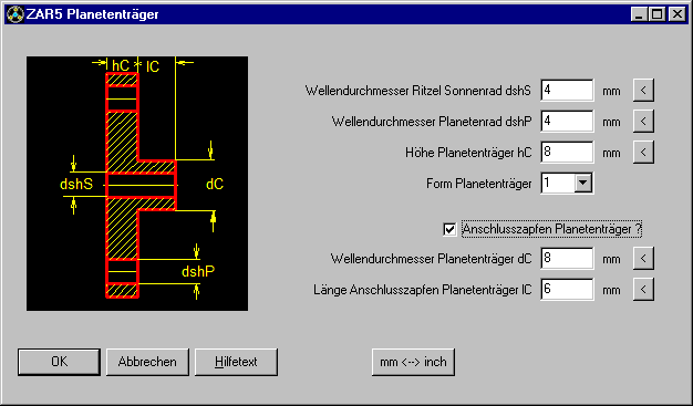 Unter "STL->Carrier" und "CAD->Carrier" kann der Planetenträger jetzt auch mit Anschlussschaft als STL-Datei generiert und ausgedruckt werden. Dabei gibt es zwei verschiedene Bauformen zur Auswahl. Die CAD- und STL-Dateien sind geeignet bei der Erstellung eines Getriebemodells mit 3D-Drucker, oder als Vorlage für die Erstellung einer Planetenträgerzeichnung.