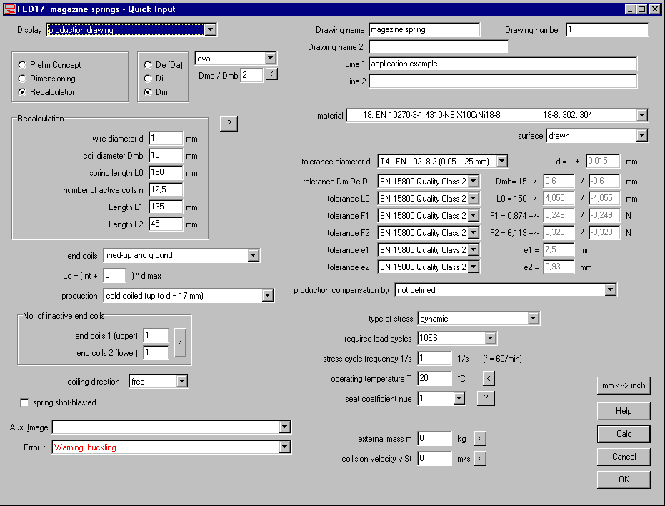 Helical compression springs with rectangular or oval or elliptic coil shape can be calculated by means of new FED17 software. These formulas are applied for calculation of magazine springs: