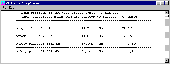 Limits of the y axis (torque) has been changed, so that S/N curve can be drawn in any case. Equivalent S/N curve of the load spectrum is no longer drawn nor the corresponding parameters TnFeq, TnHeq, T0Feq and T0Heq, as not mentioned in ISO 6336-6. Scale of the x axis (cycles) can be drawn linear or logarithmic. Program calculates torque for safety factors SH=1 and SF=1 in an iteration, as well as static safety SHplast and SFplast for the highest (1st) torque of the load spectrum.