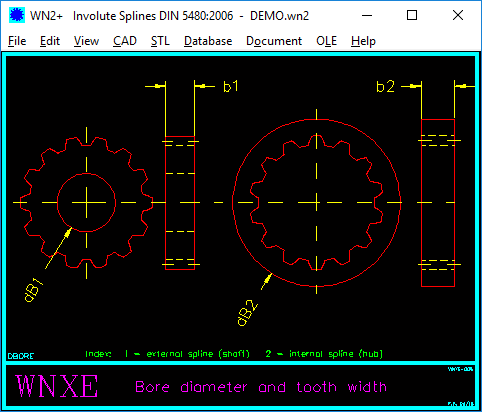 The new WN12 software calculates the dimensions of face splines. Outside diameter, inner diameter, teeth, fillet radius and tooth tip clearance and tooth gap angle are input data.