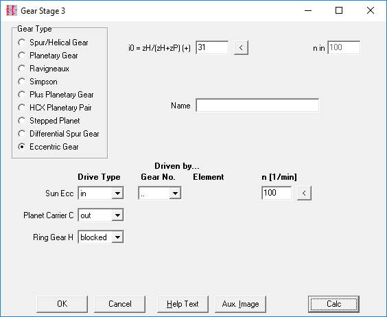 Mit ZAR1+ werden die Zahnräder ausgelegt. Zähnezahl Wälzrad 30 Zähne, Hohlrad 31 Zähne.