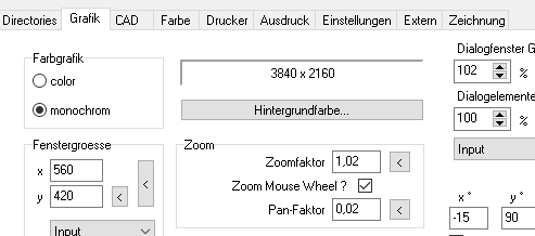 Mit dem Mausrad kann man Zeichnungen und Grafiken vergrößern und verkleinern. Leider funktioniert das mit Windows 10 nicht immer wie gewünscht, bisweilen wird das Hintergrundbild in den Vordergrund gerückt und gezoomt, wenn man gerade eine Eingabe macht und dabei unbeabsichtigt das Mausrad berührt. Deshalb kann man Zoomen mit Mausrad jetzt abschalten ("Zoom Mouse Wheel?").