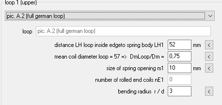 In order to reduce bending stress and torsional stress in the body-loop transition, the loop diameter and the coil diameter at the loop transition can be reduced, which reduces the lever arm DmLoop / 2. In FED2+ you can now enter a smaller coil diameter and loop diameter by entering a factor DmLoop / Dm. The loop diameter is then taken into account when calculating the bending stress in the loop.