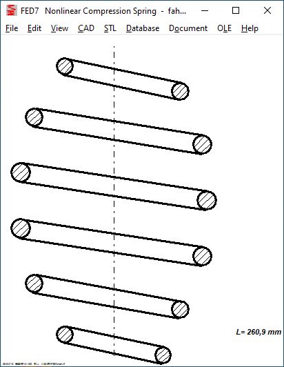 The extension spring drawing is now available in vertical and horizontal view, with and without text. Since it was possible to enter a different coil diameter for the eyelets, tension springs with hook loops sometimes had been drawn too large. The error has been corrected.