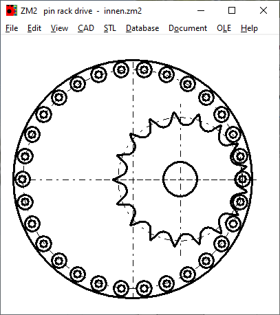 With ZM2 you can also calculate a gear with a pin wheel (pins on a bolt circle) instead of a pin rack.