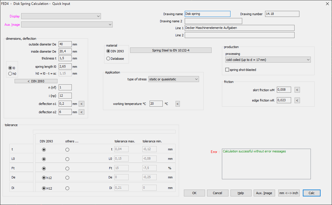 In the new Quick input of the disk spring design software, all input windows are combined into one large window, in the background you can display all possible graphic windows with calculation results and diagrams.