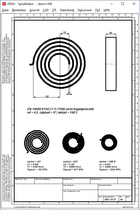 FED9+: Spiralfeder mit Fertigungszeichnung, Animation, Quick-Eingabe, Quick4-Ausgabe