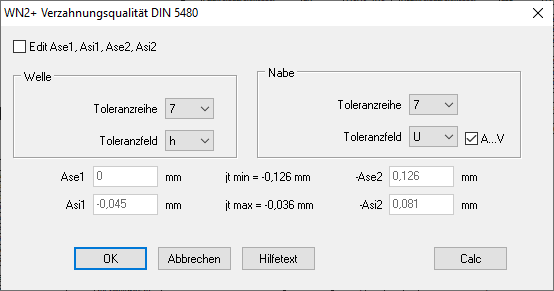 In WN2+ konnte man den Bereich der ISO-Toleranz für das Nabenprofil zusätzlich zu den DIN 5480 Toleranzen F..M auf A..S erweitern. Jetzt wurde der zusätzliche Bereich nochmals um die ISO-Toleranzen T,U,V erweitert, also "A..V" statt bisher "A..S".
