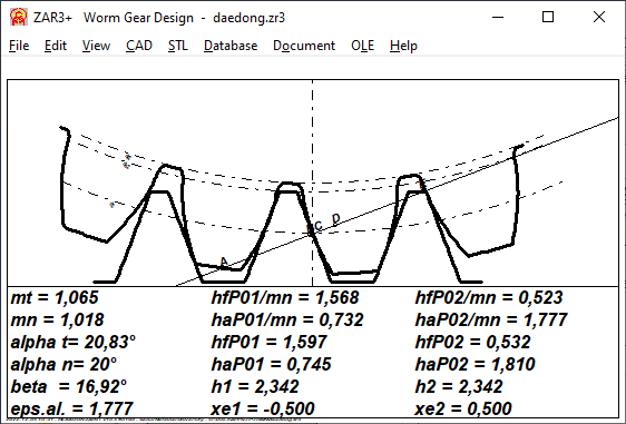 ZAR3+: Zahnhöhenfaktoren mit Zahnprofilzeichnung