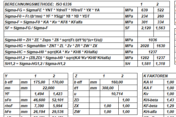 Bisher war ZW für ein einsatzgehärtetes Ritzel mit einem induktiv gehärteten Zahnrad nach Fall 1 berechnet worden, das ergab dann oft ein ZW < 1.