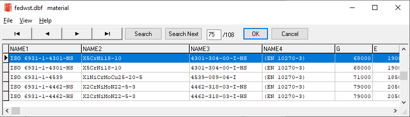 EN 10270-3 was withdrawn years ago and replaced by ISO 6931-1 (see Info Letter 184). If you don't know that, you will search in vain for stainless spring steels according to EN 10270-3 in the spring database. Therefore, "(EN10270-3)" is now listed under NAME4.
