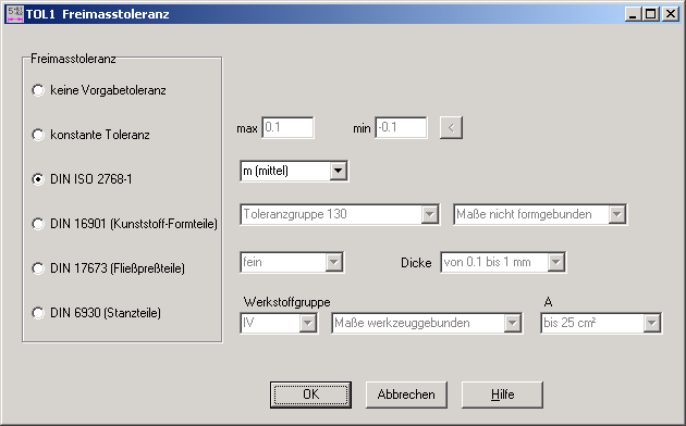 TOL1- Neues Eingabefenster für Freimaßtoleranzen