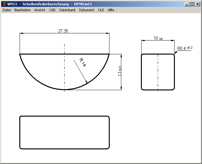 Zum Lieferumfang von WN11 gehört eine Datenbank, die alle Abmessungen von Scheibenfedern nach DIN 6888 enthält. Die Datenbank kann vom Anwender modifiziert und erweitert werden.