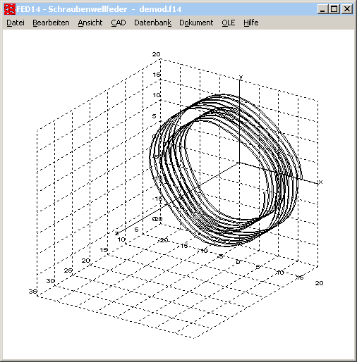 In der Vorauslegung muß man nur 2 Federkräfte und einen Hub, oder eine Federkraft und einen Federweg eingeben, und FED14 berechnet die Abmessungen. Hierbei kann man die Parameter Wellenzahl, Wickelverhältnis, Sicherheit Sigmaz/Sigma2 (Spannung) und sc/s2 (Blockfederweg) nach Bedarf verändern.