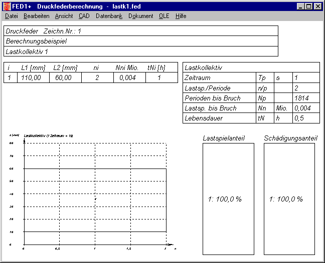 Dies entspricht der Eingabe in FED1+ ohne Lastkollektiv. Die Berechnung ohne und mit Lastkollektiv muß folglich denselben Wert ergeben.
