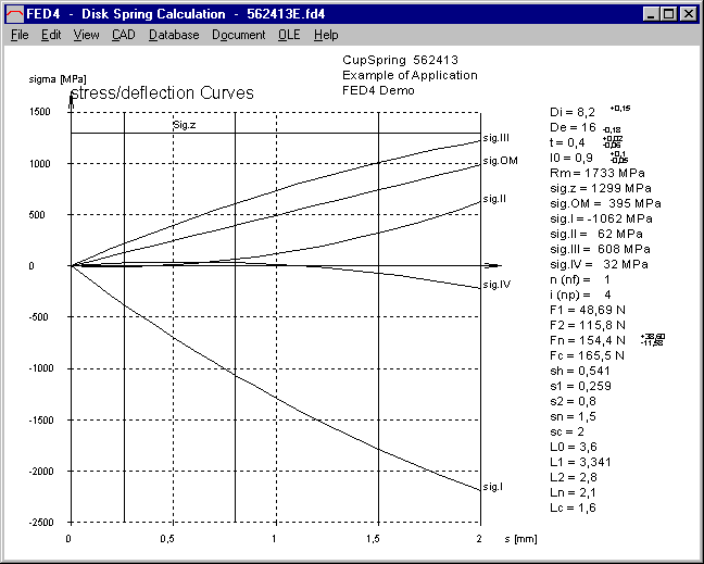 Bending stress SigmaOM of the disk spring is mainly used to calculate static stressed disk springs. SigmaOM has been added to stress diagrams and printout.