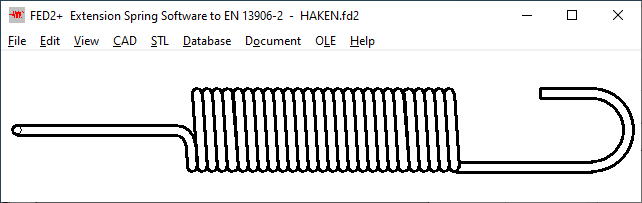 FED2+: Extension spring in horizontal view and hook loop drawing
