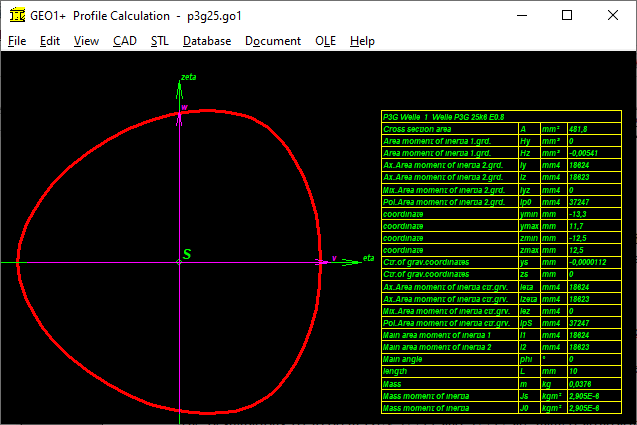 GEO1+ can also be used to determine the mass moment of inertia of a shaft with a P3G profile.