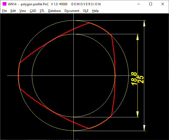 Polygon-Trochoid-Profiles (P3G) can now also be generated in GEO1+. In addition to the pitch circle diameter and eccentricity, the number of corners and the resolution can also be entered here.