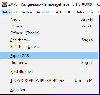 In ZAR7 und ZAR8 kann man jetzt ein Getriebepaar auswählen (Sonne-Planet, Planet-Planet, Planet-Hohlrad) auswählen und in ZAR1+ exportieren.