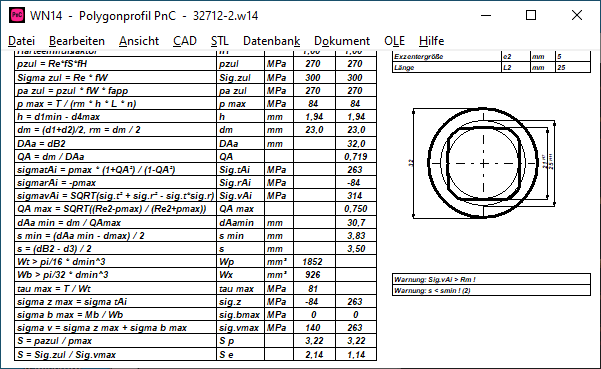 WN14: Software zur Berechnung von Welle-Nabe-Verbindungen mit PnC-Polygonprofil