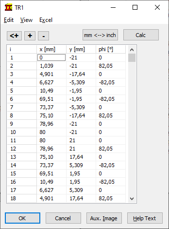 The pin wheel can be an external gear wheel or an internal gear wheel. For the internal gear, the number of bolts is entered as negative (analogous to the negative number of teeth on a ring gear).