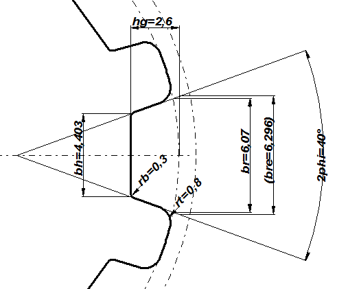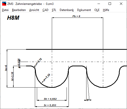 In ZM3 werden alle Zahnprofile in ein Trapezprofil mit Übergangsradien umgerechnet.
