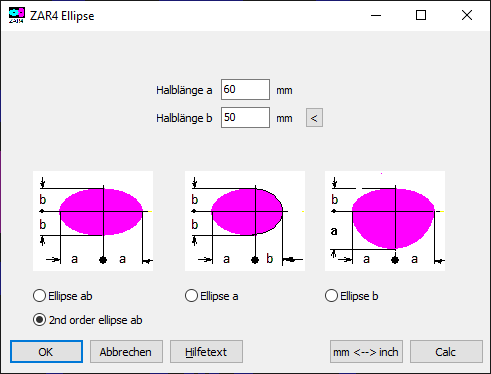 In ZAR4 und GEO4 kann man jetzt statt einer Ellipse auch eine Ellipse 2.Ordnung als Teilkurve (ZAR4) oder als Nockenform (GEO4) wählen.