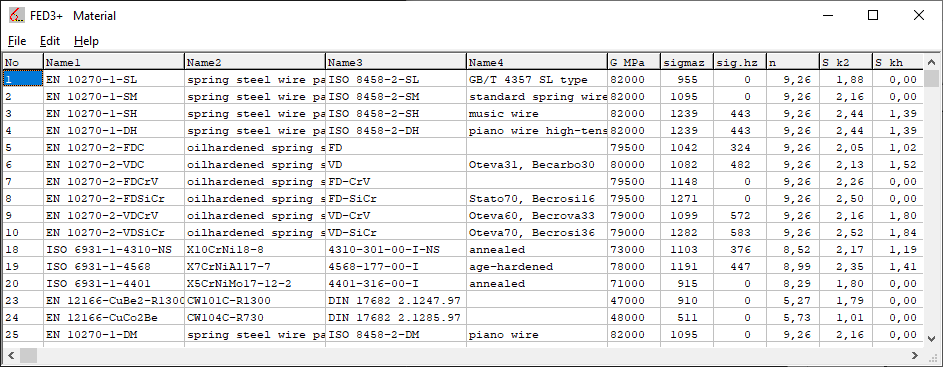 As in FED1 +, you can now choose the optimal material for tension springs and torsion springs by comparing the materials from the database.
