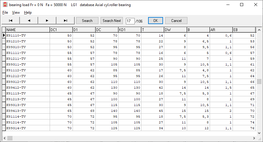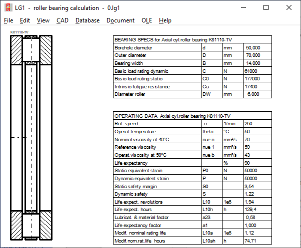 With LG1 you can now also calculate axial bearings: Axial needle roller and cage assemblies and axial cylindrical roller bearings have been added.