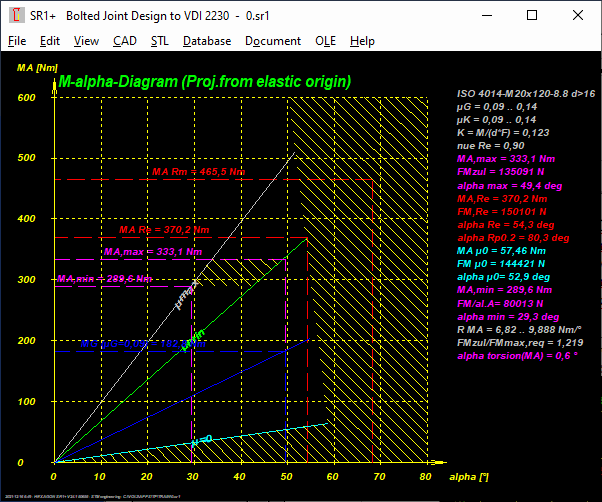 The tightening torque for 30% Re can either be entered, or read off in the M-alpha diagram for alpha = 0.3 * alphaRe (with deviation due to friction tolerance).