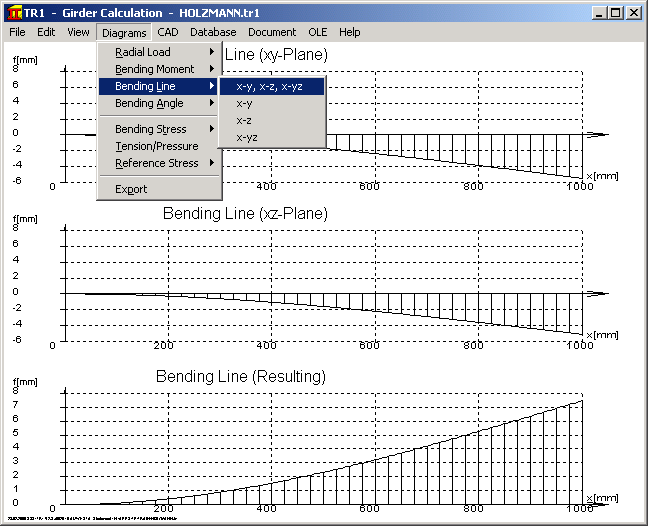 TR1 calculates radial deflection by axial load for girders with fixed clamping or fix/loose bearing.