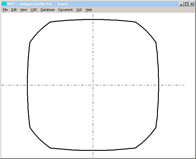 Unter CAD->P4C kann man jetzt wie in WN6 das P4C-Profil von Welle und Nabe als DXF- oder IGES-Datei maßstäblich ausgeben und in CAD übernehmen. Das P4C-Profil ist keine durchgehende Zykloidenkurve wie P3G in WN6. Die Zykloide wird durch den Außenkreisdurchmesser d1 bei der Welle und d3 bei der Nabe begrenzt. Das Profil besteht aus 4 Teilen einer Zykloidenkurve und 4 Kreisbogen mit d1/d3. Die Zykloidenkurve ist in DIN 32712 und in den Zeichnungen als Radius r = d2/2 + 16e dargestellt, in der neuen CAD-Profilzeichnung wird die Zykloidenkurve gezeichnet. Das Profil kann als LINE/ARC oder als POLYLINE generiert werden, die Auflösung der Zykolidenkurve ist konfigurierbar. Mit den "<" Buttons für Welle und Nabe wird d1/d3 und d2/d4 in Toleranzmitte berechnet, man kann aber auch andere Werte für Außen- und Innenkreisdurchmesser eingeben.