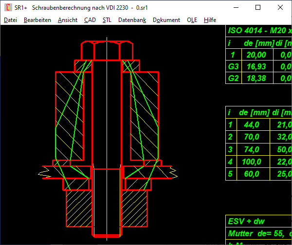 Wenn diese Option gewählt ist, werden die Innenkegel in die Zeichnung der Schraubenverbindung mit eingezeichnet.