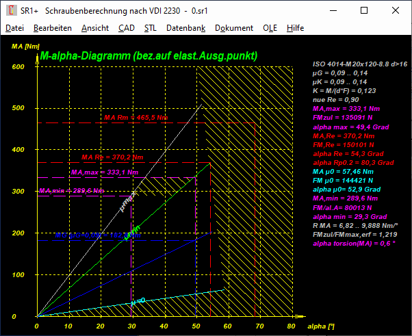 Das Anziehdrehmoment für 30% Re kann man entweder eingeben oder ablesen im M-alpha-Diagramm für alpha=0.3*alphaRe (mit Abweichung durch Reibungstoleranz).