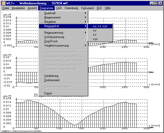 Durch Untermenüs für xy-Ebene, xz-Ebene und Resultierende sind die Diagramme jetzt überschaubarer und schneller darstellbar.