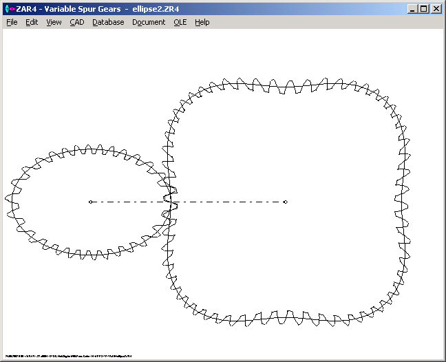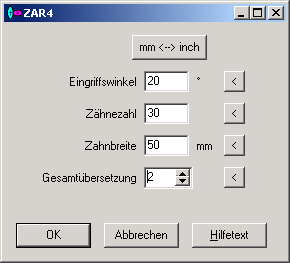 Bisher waren die Zähnezahlen der unrunden Zahnräder gleich, die Gesamtübersetzung = 1. In der neuen Version kann man für Zahnrad 2 ein ganzzahliges Zähnezahlverhältnis eingeben.